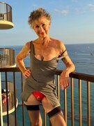 > Crotchless red underwear, high heels, and nylons.