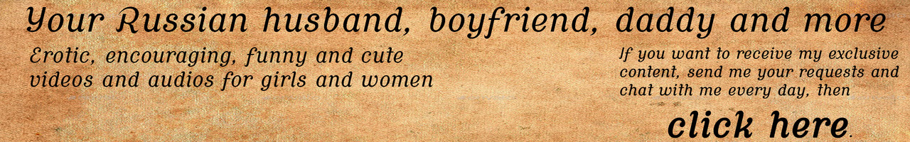 Support me on www.patreon.com/russianhusband if you want to receive my exclusive audios and videos, learn more about me, hear your name in my audios, realize your hot fantasy and regularly communicate with me. If you are a single girl or a lonely woman who likes erotic audios and videos for women, then you have come to the right place. This Russian husband, Russian daddy and just a good Russian is for you.