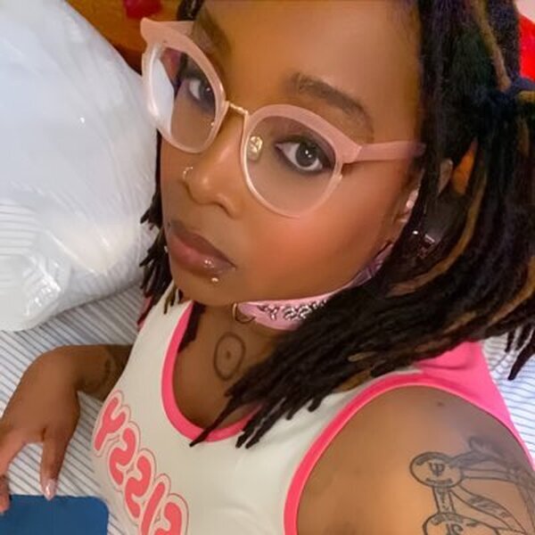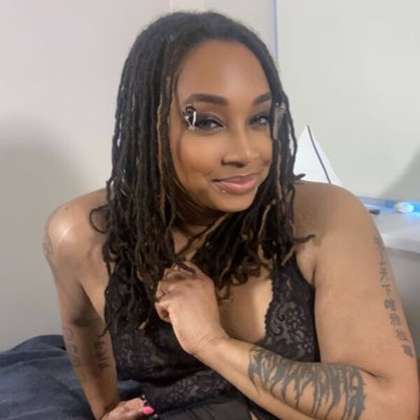 Ebony sissy playing with dildo