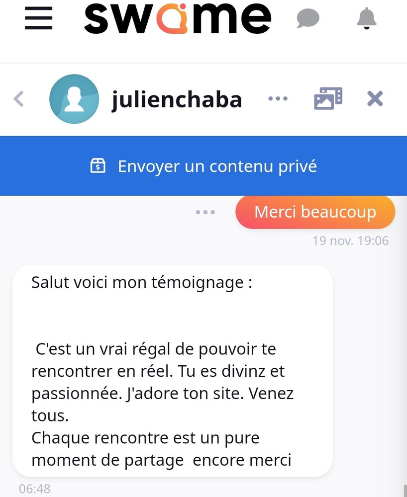Alors mon chéri... Je t'attends dans mon espace vip... Je vais reprendre mes ...